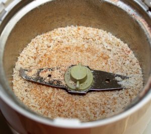 Dejar enfriar y triturar con un robot de cocina. Si tenéis molinillo de café triturarlo con él, deja el pan muy fino.