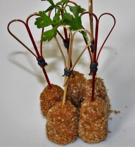 Para servirlas las podéis pinchar con un palito y colocar de pie. Decorar con una ramita de perejil.