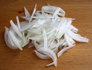 Cortar la cebolla en juliana.