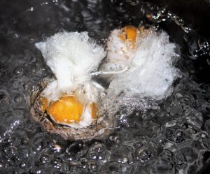 Introducir en un cazo con agua hirviendo. 5 minutos. La clara nos debe quedar cuajada y la yema líquida.