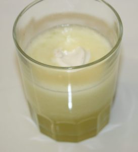 Con 200 g de melón hemos obtenido 100 g de licuado. Añadirle 20 g de espesante de yuca y 20 g de yogur griego. Poner en un biberón y reservar en la nevera 4 horas.