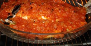 Verter sobre el pescado el sofrito.
