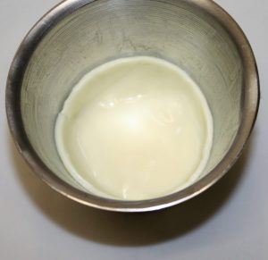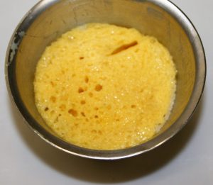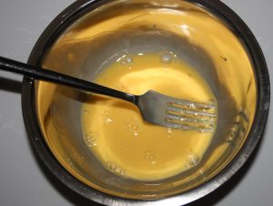 Poner en un bol el huevo con las dos cucharadas de nata y una pizca de sal.