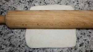 Aplastar las rebanadas de pan con un rodillo. Si no tenéis podéis emplear una botella.