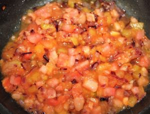 Añadir el tomate y una pizca de sal. Un minuto y sacar.
