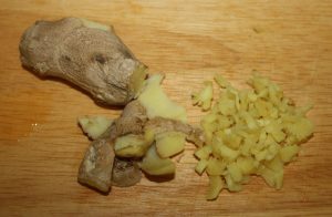 Pelar un trozo de jengibre y cortar en trozos pequeños.