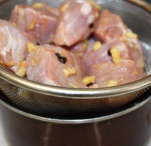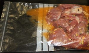 Sacar la carne de la bolsa y colar para recuperar el jugo de maceración.