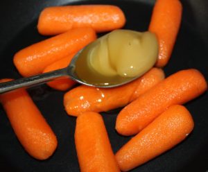 Mientras tanto hacer las zanahorias. Si no habéis encontrado baby, utilizar normales troceadas. Colocarlas en una sartén y añadir la miel.