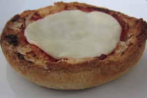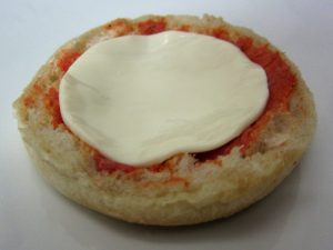 Si utilizáis un pan redondo cortar un círculo de queso, con un cortapastas, de un tamaño un poco más pequeño que el pan.