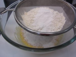 Añadir la harina y levadura tamizada, con un tamizador o colador de malla fina.