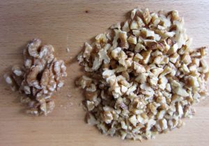Trocear la nueces con un cuchillo en trozos grandes, queremos que se noten.