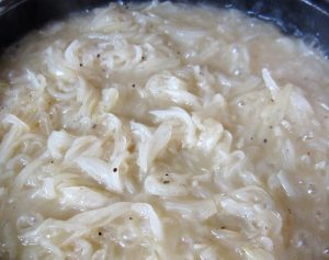 Añadirlas a una sartén con el aceite, sal y pimienta. 50 minutos, tapadas, con el fuego al mínimo. Mover de vez en cuando.