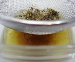 Colar, con un colador de malla fina, el aceite con los jugos que ha soltado la carne. Reservar.