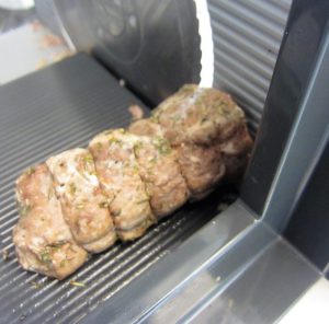 En este caso lo vamos a cortar con una máquina de fiambre, bien fino y comer frío, bueno a temperatura ambiente. Si no tenéis maquina de fiambre cortarlo a mano, lo más fino que podáis.