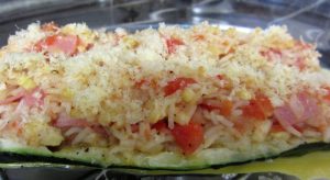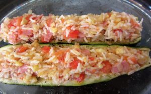 Rellenar con la mezcla de arroz, jamón y verduras.