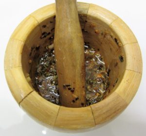 Añadir el resto de ingredientes del adobo: ñora, orégano, tomillo, pimentón, vinagre, aceite, sal y pimienta.