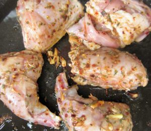 - 4 cucharadas de aceite de oliva 0,4º para el adobo y 5 para freír el conejo