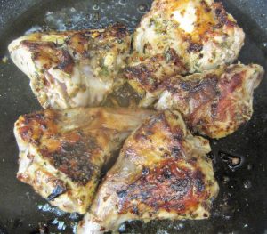En una sartén con 5 cucharadas de aceite freír el conejo hasta que esté bien dorado.
