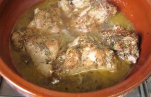Cocer tapado 1 hora con el fuego al mínimo. Debe quedar muy tierno. Pincharlo para comprobarlo.