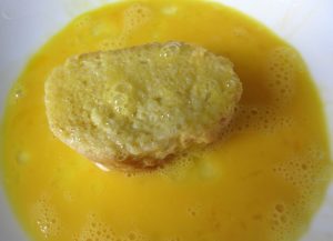 Pasar las rebanadas por el huevo.