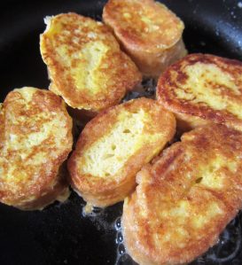 Las clásicas se remojan en leche o vino, se pasan por huevo batido, se fríen y cuando todavía no se han enfriado del todo se espolvorean con azúcar glas y canela en polvo.