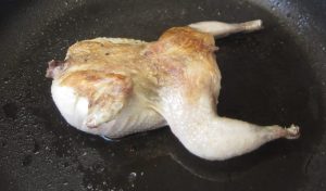 En cuanto la codorniz esté dorada introducirla en la cazuela.