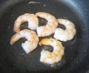En la misma sartén donde hemos hecho el beicon vamos a hacer los langostinos.