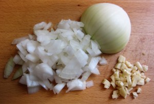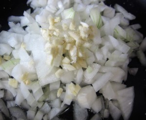 En una sartén con el aceite, pochar. 5 minutos a fuego medio. Mover para que no se queme.
