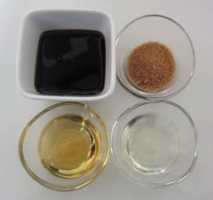 La salsa teriyaki es una salsa japonesa elaborada con salsa de soja, sake, mirin y azúcar. Como normalmente en casa no tenemos sake, se puede sustituir por otro alcohol, en este caso vamos a emplear vino blanco. También le podéis añadir un poco de jengibre rallado.
