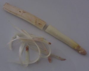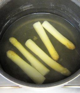 Vamos a cocer 5 espárragos blancos de tamaño medio ( yo los prefiero a los «cojonudos», los que son muy gordos ).