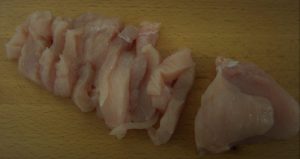 Cortar la pechuga en tiras.