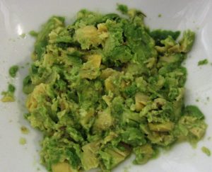 Sacar la carne del aguacate y machacar con un tenedor, no mucho, que no quede una pasta.