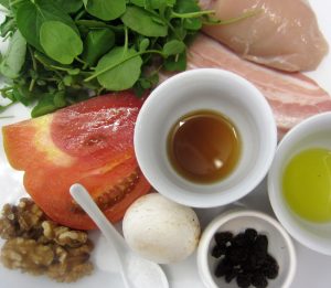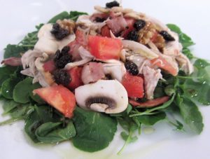 Después de la receta anterior del bocadillo vamos con una ensalada de aprovechamiento en la que vamos a utilizar el pollo y los champiñones que nos sobraron en la receta anterior y los berros que nos sobraron en la receta del ceviche de salmón.