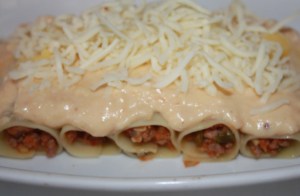 Rellenar los canelones. Colocar en una fuente apta para el horno.