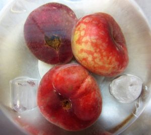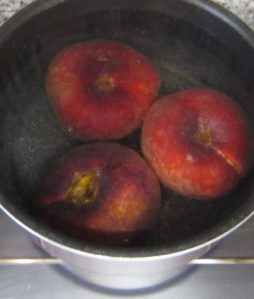 Escaldar los paraguayos para que sea más fácil pelarlos. En plena temporada la piel esta muy pegada a la carne. Introducir en agua hirviendo 40 sg.