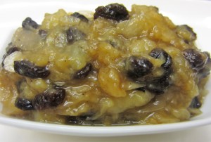 Se elabora principalmente con frutas ( piña, manzana, albaricoque, melocotones, mango, limas… ), hortalizas ( calabacín, berenjena cebolla… ) e incluso algunas legumbres. Los otros ingredientes son: azúcar moreno, vinagre y especias ( canela, granos de mostaza machacados, jengibre, chile…)