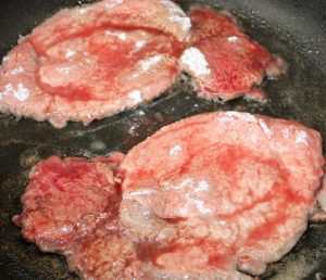 En una sartén con el aceite dorar la carne. Fuego fuerte. 2 minutos por cada lado.