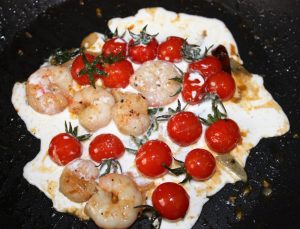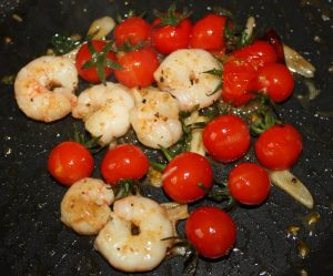 Unos 5 minutos a fuego bajo para que las gambas adquieran un color blanco pero sin tostarse, y los ajos se vayan reblandeciendo pero que tampoco se quemen.