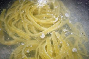 Para cocer la pasta debemos añadirla a una cazuela con agua suficiente para cubrirla. La cantidad de sal adecuada es 10 g por litro de agua. El tiempo de cocción depende del tipo de pasta, lo mejor es seguir las instrucciones del fabricante. La pasta debe quedar cocida y blanda por fuera y ligeramente dura por dentro, lo que se denomina » al dente «.