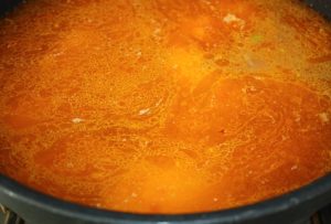 Destapar y cocer media hora más para que vaya reduciendo el líquido.
