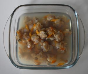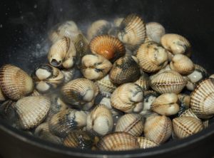 Poner los berberechos a remojo en agua con sal para que suelten la arena que puedan tener dentro.