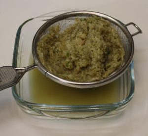 Triturar con el cebollino y una cucharada del caldo de cocción.