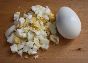Cocer los huevos, pelar y picar.