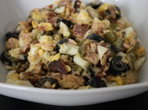 Escurrir las aceitunas y el atún.