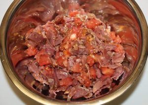 Mezclar la mostaza con el aceite de girasol. Añadir los dados de tomate y….