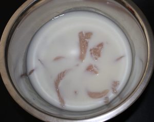 Como os he dicho en otras recetas, la pechuga resulta bastante seca al asarla. Si la ponéis a remojo con leche os saldrá muy jugosa, con 10 minutos es suficiente.