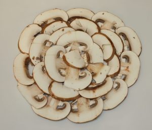 Colocar en un plato las láminas de champiñón formando un rosetón.