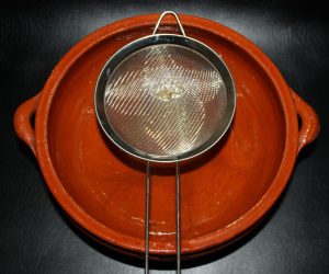 Reservar las sardinas y colar el aceite para eliminar los restos de harina. Ponerlo directamente en el recipiente donde vayáis a hacer el escabeche. Si es una cazuelita de barro mejor.