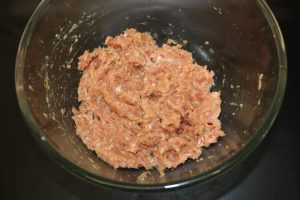 Vamos con el relleno. En un bol mezclar la carne picada, el huevo, el pan, perejil picado, sal, canela, pimienta y una cucharadita de ralladura de limón ( cuidado no ralléis la parte blanca, el albedo, que amarga ).