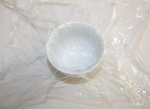 Utilizar un cuenco redondo del tamaño del que queréis que os salgan las pilotas. Cubrir con film, apretando con las manos para que quede pegado a las paredes. Cortar un trozo grande para que os sobre bastante por los lados.